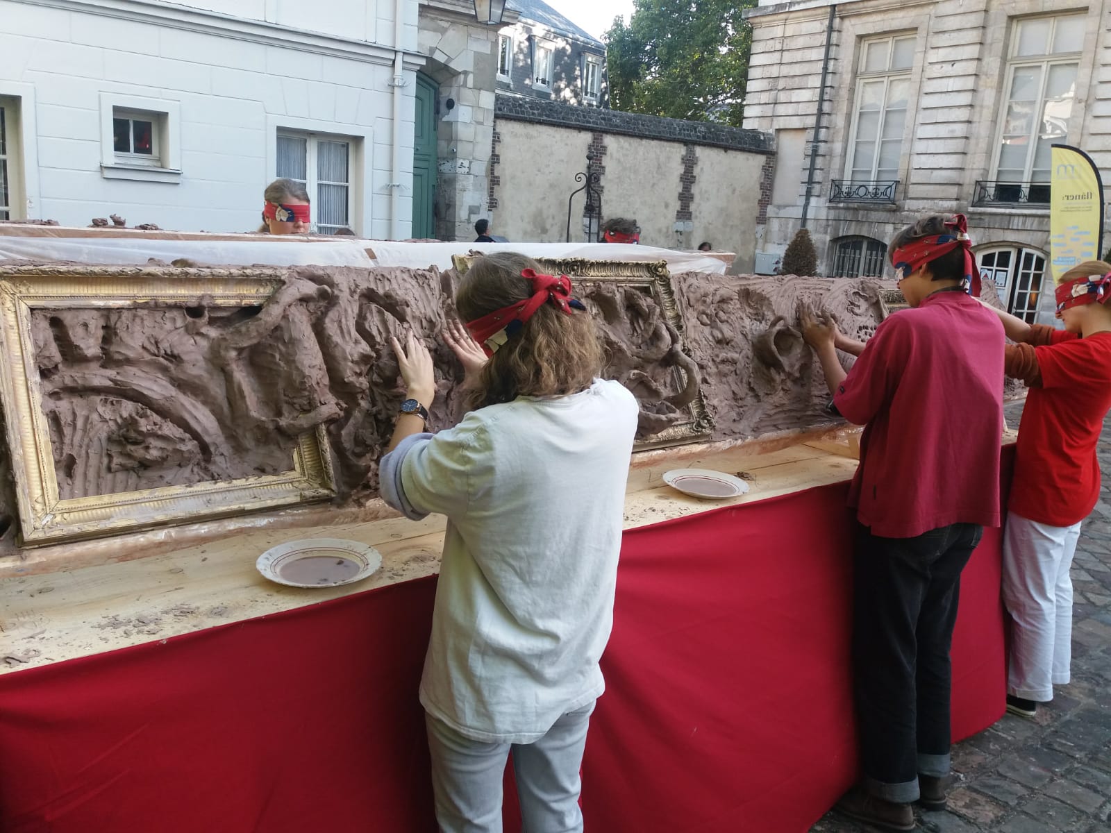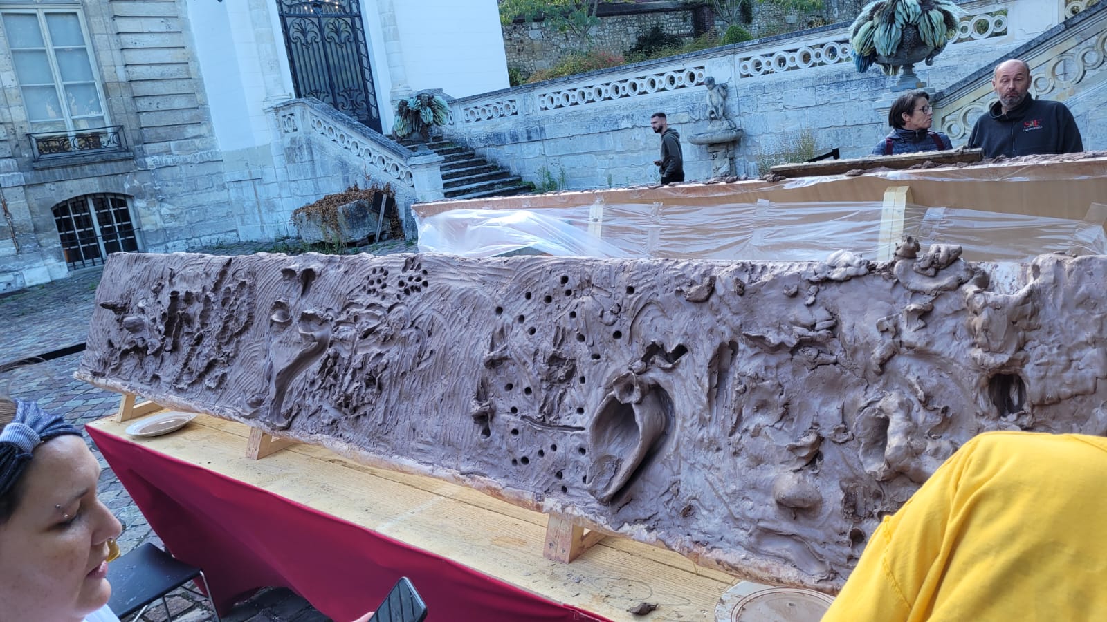 Sur un chevalet d’argile de 7m de longueur mis à disposition du public.